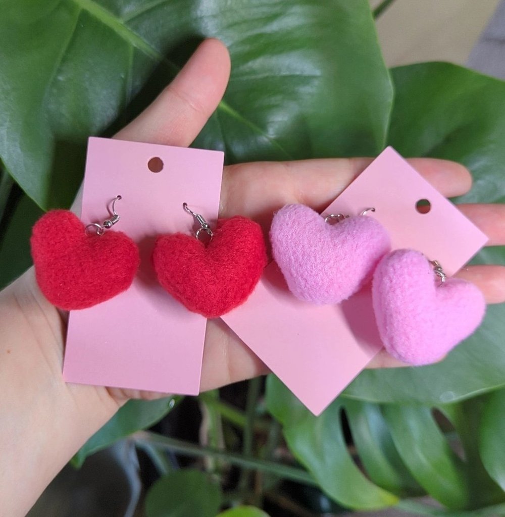 These heart earrings are super plushie and lightweight!! They also come in two sizes, Mini and Medium!