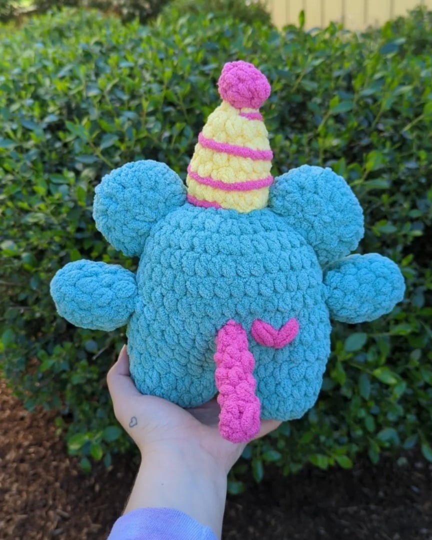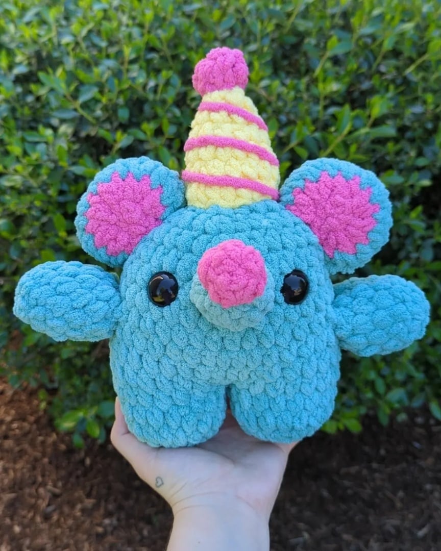 Party Gus is a mini, is made with super soft yarn, and is stuffed for perfect squishiness!